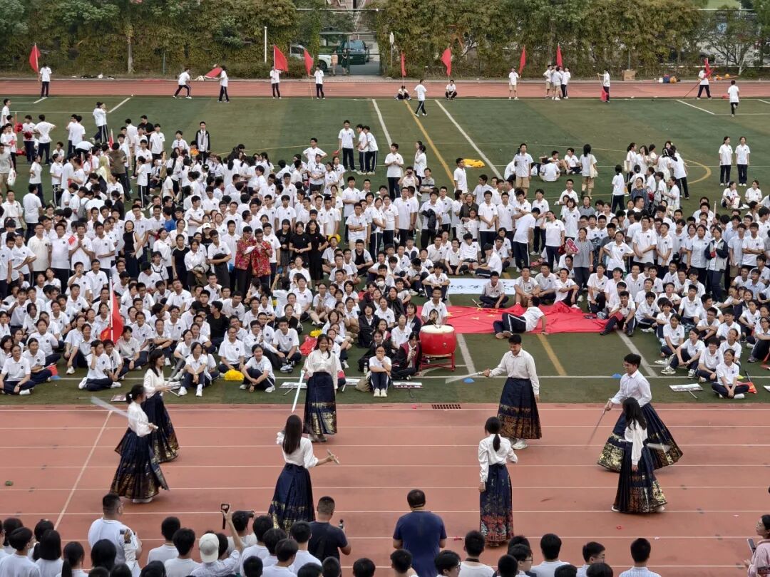 国际部高一年级方阵昂首入场,步伐铿锵踏响节奏,校服整齐映朝气,目光坚定展风采,以利落队列书写青春活力。入场式的每一步都充满了青春的气息,表演即将开始。让我们把目光聚集在主席台,在天一学子和老师的见证下,一同观看着充满着活力的表演。