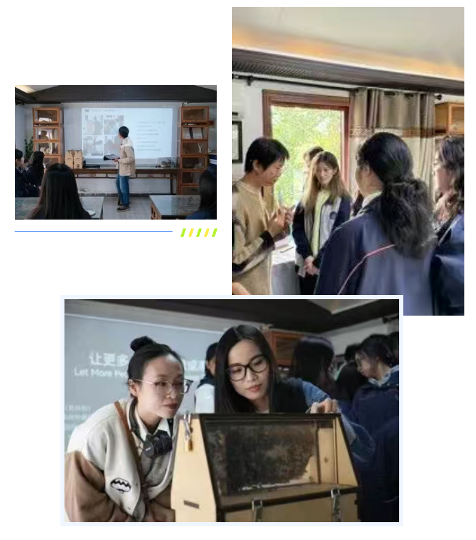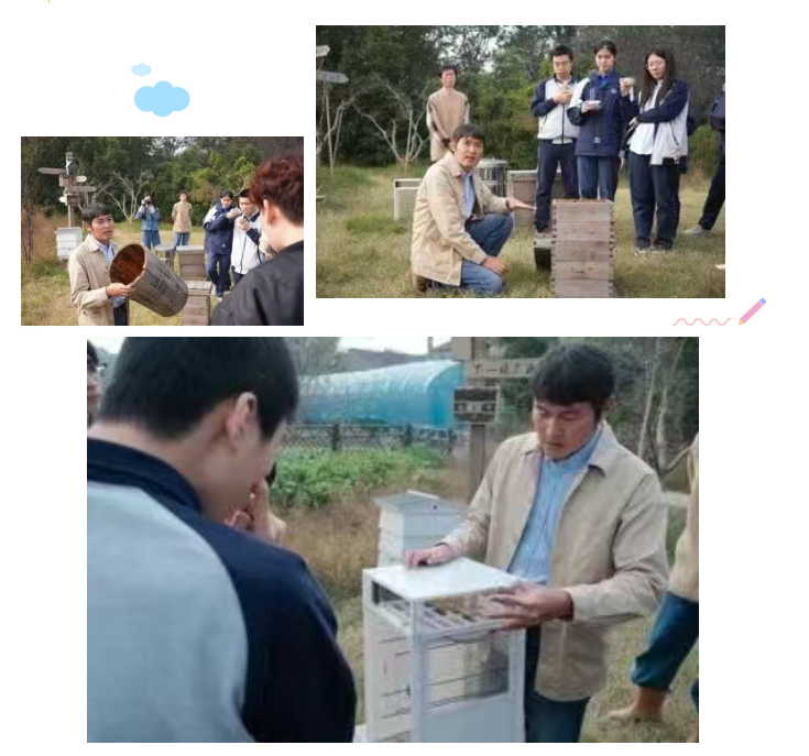 芝松老师随后梳理蜂箱发展脉络,简要介绍圆通蜂箱、郎式蜂箱、高窄式蜂箱的核心构造与适配场景,重点突出永德箱在降低养蜂门槛、兼顾生态保护与实用性上的突破性优势,让同学们读懂小小蜂箱里的迭代智慧。