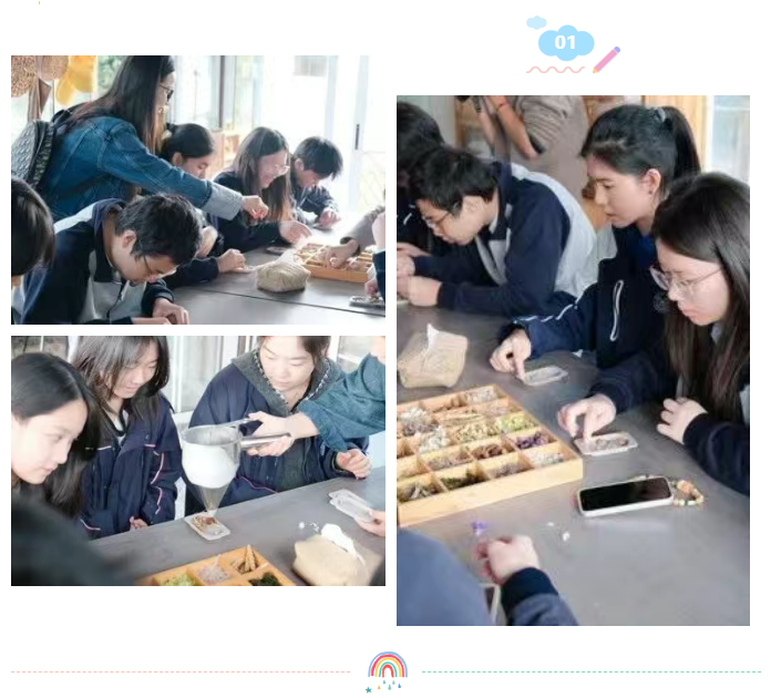 最后的手工创作环节充满治愈感,工作人员先科普蜂蜡的独特优势 —— 燃烧无有害物质,是制作手工艺品的天然原料。随后同学们挑选勿忘我、满天星等干花,搭配天然蜂蜡与精油,精心打造独一无二的蜂蜡蜡牌,让自然的芬芳与质感融入日常,为生活增添温馨雅致的气息。
