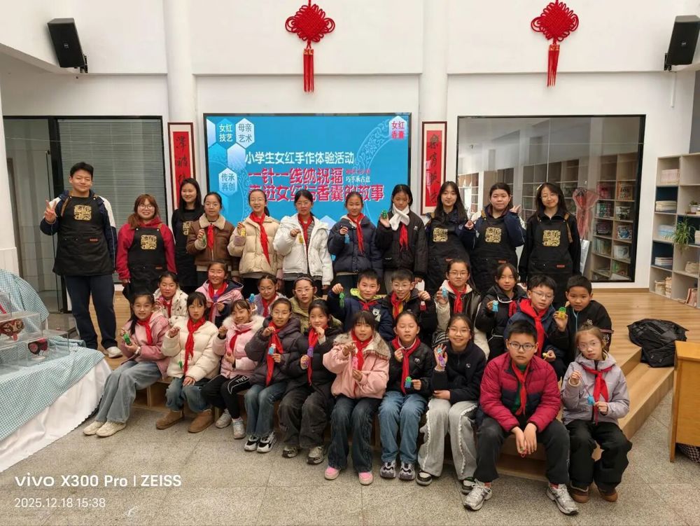 【学生活动】针丝传雅韵,美育润童心——天一非遗社:赴长泾实小 传女红薪火 发布时间:2026-01-07 点击数: 次 【字体:小 大】 2025 年 12 月 18 日下午,秉持 “做文化的使者” 的宗旨,天一非遗社走进江阴市长泾实验小学,以 “中国女红 母亲得到的艺术” 为主题开展非遗文化宣传普及活动。课堂之上,是知识的沉淀;校园之间,是非遗文化传递的桥梁。这场跨越校园的文化之约,用一针一线串联起传统与童真,让非遗社团的文化使命在实践中落地生根。 分享到: 【打印正文】