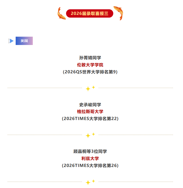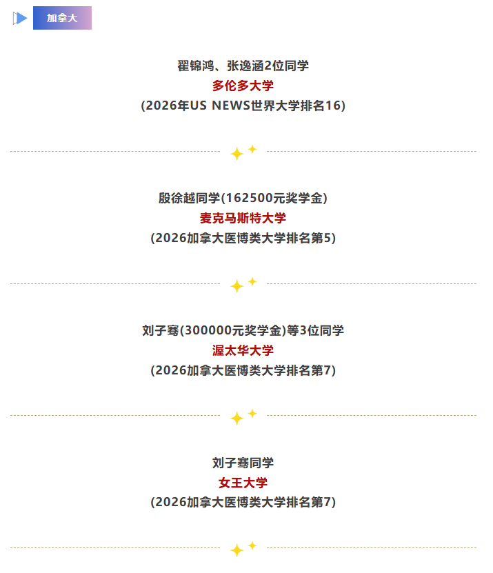 2026届录取季正式开启,截至12月5日,我校AP课程班一批同学喜获美国、英国、加拿大、澳大利亚、新西兰多所世界顶尖名校录取!这一喜讯不仅是对他们辛勤付出的充分肯定,更为我们带来了无限的信心与期待!