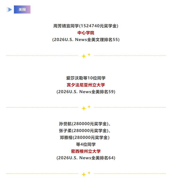 回顾上个申请季,2025届毕业生累计获得836枚offer,超过半数学生共获得近4800万元奖学金。其中,美国顶尖藤校康奈尔大学,全美TOP10名校西北大学、卡尔顿学院,加州大学洛杉矶分校、莱斯大学、圣路易斯华盛顿大学、史密斯学院、南加州大学、北卡罗来纳大学教堂山分校、纽约大学等名校纷纷录取天一学子。