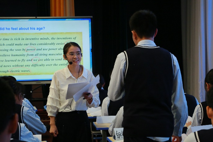 常州市第一中学许秋艳老师仿佛闲庭信步又步步生莲,课堂设计以终为始,目标任务意识非常明确。许老师以与自己生活相关的常州市电信博物馆导入,激发学生兴趣,拉近与学生的距离。听、说、读教学活动难度适中,充分调动学生的课堂参与,并为写作任务提供足够的支架。启发深度思考的问题基于文本,又不着痕迹,合理流畅。运用自评与同辈互评推动教学评一体化落到实处。