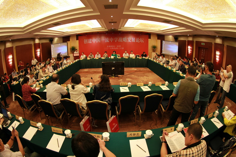 9月30日下午15:00-17:30,人大附中、华师大二附中、南师大附中等60余所全国知名高中校长,北京大学、清华大学、浙江大学、中科大、复旦大学、南京大学等15所高校领导、学者欢聚天一,大家就理想的未来学校、“知名学校”在传承和创新中应思考什么、顶尖大学如何回应“钱学森之问”等话题展开了深入的交流和研讨,与会者一致认为:“优质的教育可以改变学生的人生品质。而顶级的中学、大学义无反顾应该成为优化教育的积极探索者,而且要长期坚持,一步一个脚印艰辛探索,理性思考。”
