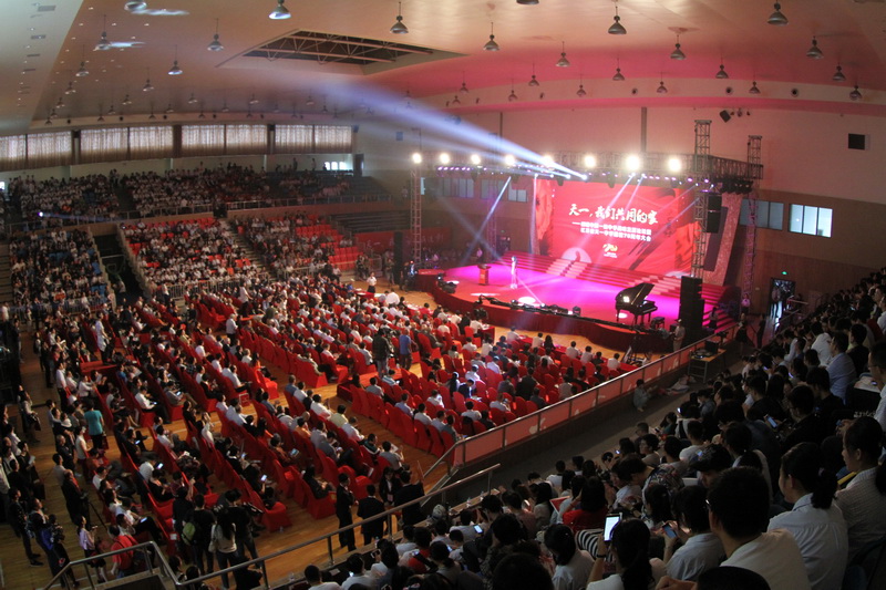 10月1日上午,校友云集,嘉宾毕至,大家畅游美丽的天一校园,参观焕然一新的天一校史馆。9:15—11:30,天一中学建校70周年庆祝大会在体育馆三楼隆重举行。大会由五个部分组成。序幕首先播放短片《天一,我们回家啦!》,然后奏唱国歌、介绍嘉宾并宣读贺信,接着与会领导、高校代表、兄弟学校代表、校友代表杜江峰院士发言,最后由沈茂德校长作了热情洋溢的校庆致辞;第一篇章为《天一生水》,嘉宾们通过同名电视短片了解天一中学的创办历程,播放结束后,学子向创始人后代赠送了“感恩杯”,校舞蹈队表演了精彩的民族舞《水的女儿》;第二篇章《水润万物》同样由电视短片开场,天一师生激情朗诵了《我是天一的教师》和《我是天一学子》,其后退休教师上台接受献花,高中部学生合唱团带来了大合唱《飞来的花瓣》;第三篇章《生生不息》短片介绍了天一的办学业绩,杰出毕业生代表向母校汇报成长,校舞蹈队的《剑浆舞》刚劲有力,而“天一·红豆奖励基金”的设立展现了红豆集团捐资助学的良好企业精神;闭幕环节是退休教师和少年部学生的大合唱《相逢是一首歌》,庆祝大会也进入了高潮。