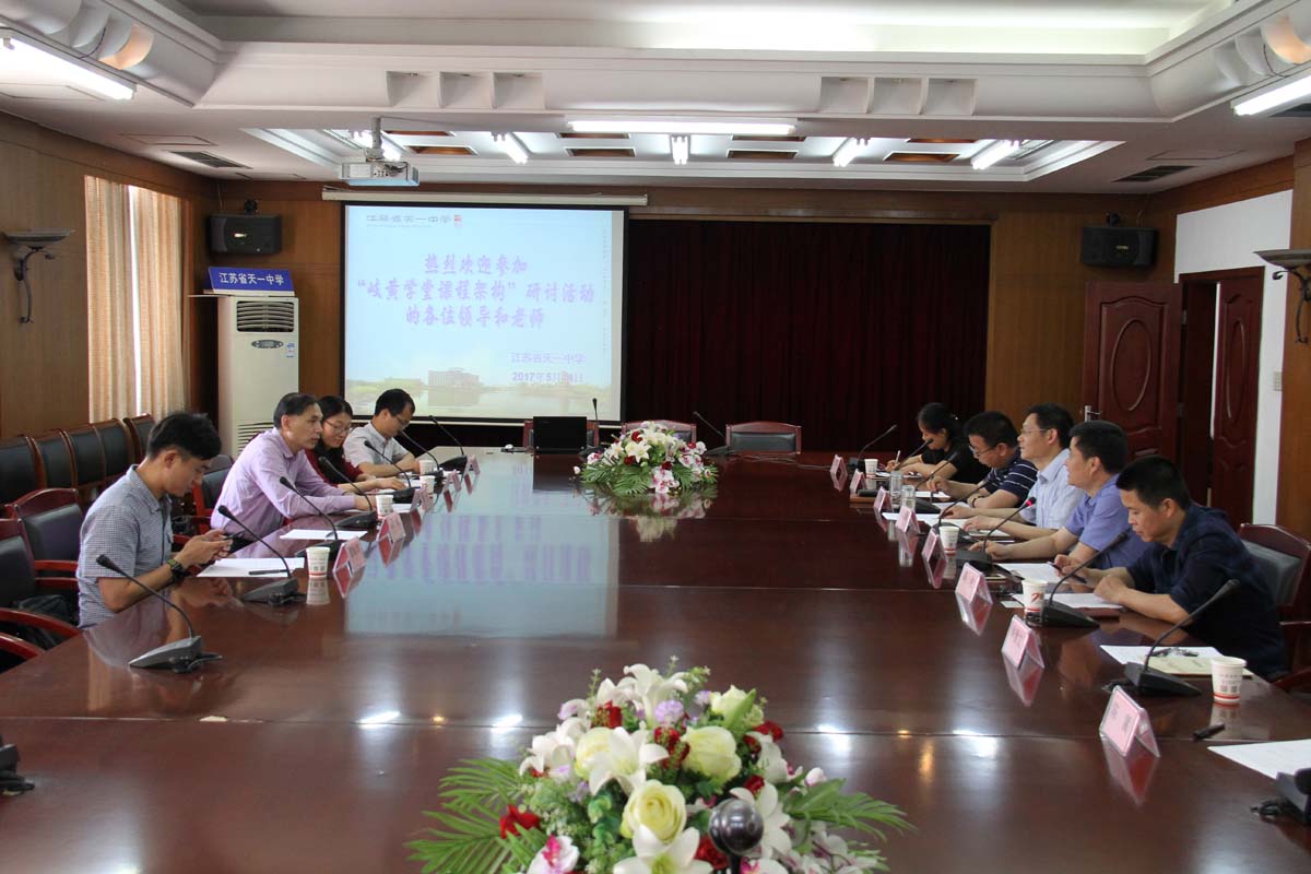 5月13日上午10:30行政楼二楼会议室,南京中医药大学的专家、领导和我校生态校园课程基地建设团队正在热烈研讨“岐黄学堂的课程架构”。陈志刚副校长对岐黄学堂寄予厚望,提出如下定位:不断丰富岐黄学堂课程,使之成为我校生态校园课程基地的核心课程系列;不断提升岐黄学堂影响力,成为我校与高校合作的典范。邓洪贤主任提出了岐黄学堂的课程架构设想:以我校三类丰富课程体系为依据,建构岐黄学堂丰富课程。南京中医药大学第二临床医学院顾一煌院长饱含感情的概述两校友好关系:省内首个“优秀生源基地”,“全国首家岐黄学堂”;顾院长热情表示,南京中医药大学将不遗余力的提供资源支撑,和天一中学一起努力将岐黄学堂做成响当当的品牌。南京中医药大学第二临床医学院蒋燕副书记以“中医养生文化”课程这一具体成功的案例出发提出了岐黄学堂课程设置建议。在座的同志就岐黄学堂的课程开发、课程设置与实施、课程评价等方面纷纷提出自己的建议。