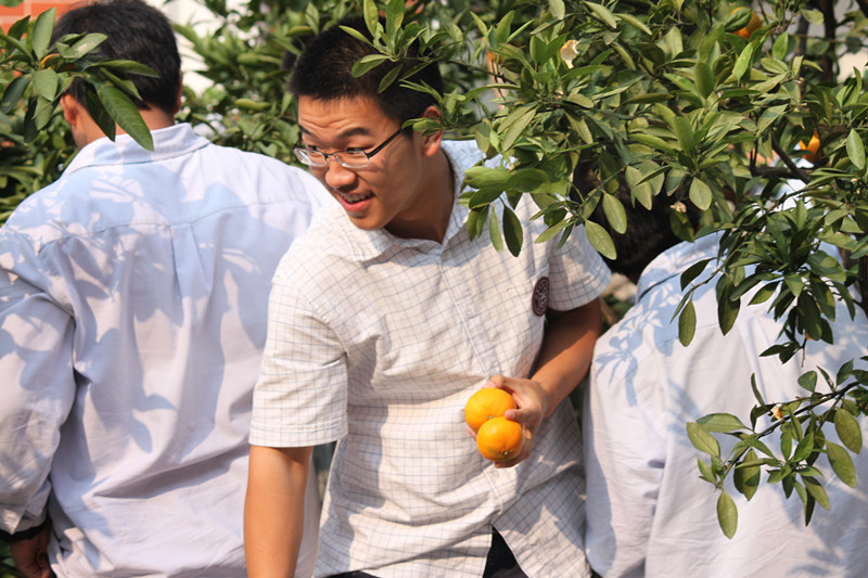 金秋摘桔 金秋摘桔 来源:本站原创 作者:t237 发布时间:2012-11-01 点击数: 次 【字体:小 大】 10月28日下午劳动课后,期盼已久的桔子采摘开始了。高二年级每个班派出4个代表,快乐有序的采摘着金色的果实,分享着收获的快乐。采摘结束,每个班领走两大袋桔子去和全班同学分享,桔子的酸甜弥漫在高二年级每个人的心中,希望一年多后的高考同样能让学生感受到付出后收获的快乐。 分享到: 【打印正文】
