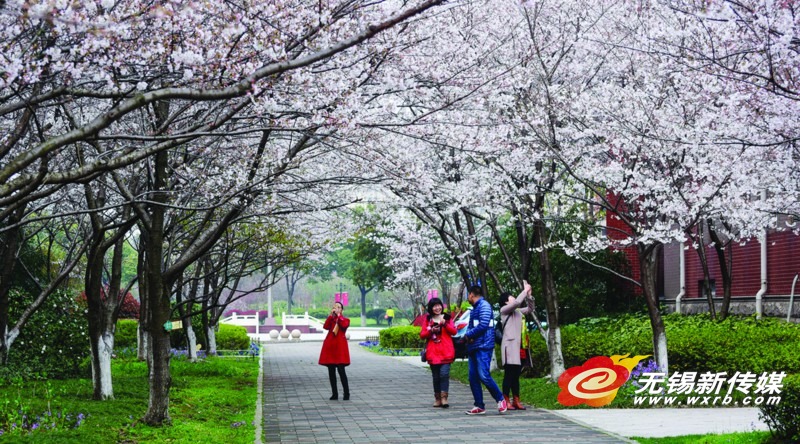 “太美了!”昨天下午,天一中学高三教学楼旁的一片樱花林下,几名学生被花团锦簇的景象所吸引,手捧书本驻足观赏。此时,正在盛放的是颜色较浅的早樱,山樱和晚樱还在“酝酿”之中,整片樱花林加起来有近百株樱花。
