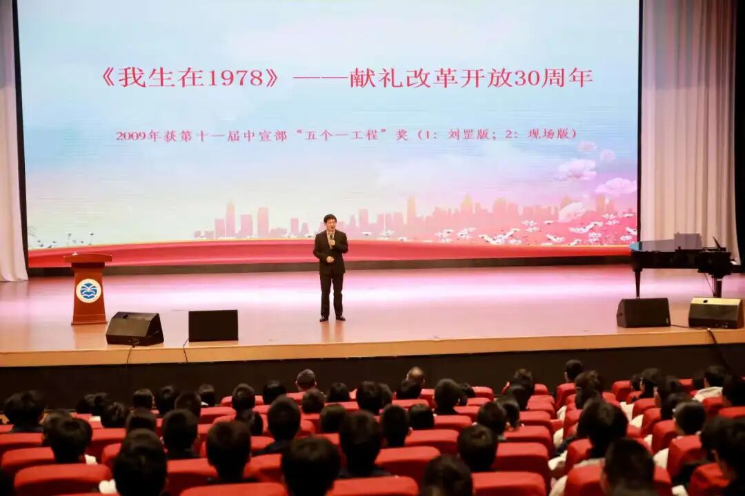 他分享的《你,就是一个兵》,歌颂抗洪英雄李向群;《邻里谣》描绘邻里和谐画卷;《我生在1978》致敬改革开放伟大历程。当《迎风飘扬的旗》的旋律响起,他详细解析这首作品如何通过音乐语言展现爱国情怀。《生命的红》则展示百姓生活翻天覆地的变化,引导学子锚定人生方向。《又见西柏坡》等作品,将革命历史与文化传承融入跳动的音符。